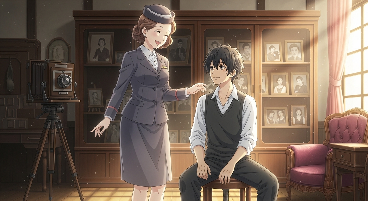まるで古いアルバムをめくるように、登場人物たちの写真が静かに映し出されていく演出…。