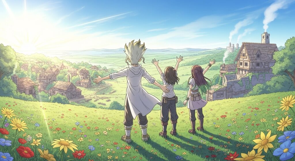 物語はこの瞬間から、滅びた世界で“もう一度文明をつくる”という前代未聞のプロジェクトへと動き出します。