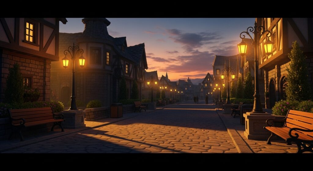 一方で、街並みや小道、建物の外観は、